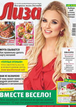 Самый популярный в России еженедельный журнал для молодых женщин «Лиза» стал еще интереснее, еще привлекательнее для читательниц. Теперь больше знаменитостей на страницах любимого журнала! Фитнес со звездой и звездный макияж, уроки стиля и самые горячие новости из жизни кумиров. А еще — модный шопинг, актуальная мода, новинки косметики и великолепные идеи для дома. Романтические истории о настоящей любви и рассказы читательниц о разных жизненных ситуациях. Аспекты психологии, секреты успешных отношений с окружающими и искусство сохранения любви.