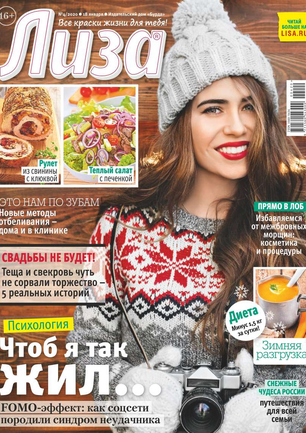 Самый популярный в России еженедельный журнал для молодых женщин «Лиза» стал еще интереснее, еще привлекательнее для читательниц. Теперь больше знаменитостей на страницах любимого журнала! Фитнес со звездой и звездный макияж, уроки стиля и самые горячие новости из жизни кумиров. А еще — модный шопинг, актуальная мода, новинки косметики и великолепные идеи для дома. Романтические истории о настоящей любви и рассказы читательниц о разных жизненных ситуациях. Аспекты психологии, секреты успешных отношений с окружающими и искусство сохранения любви.