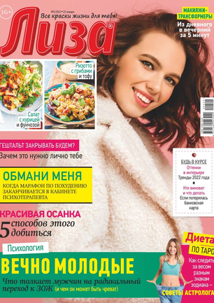 Самый популярный в России еженедельный журнал для молодых женщин «Лиза» стал еще интереснее, еще привлекательнее для читательниц. Теперь больше знаменитостей на страницах любимого журнала! Фитнес со звездой и звездный макияж, уроки стиля и самые горячие новости из жизни кумиров. А еще — модный шопинг, актуальная мода, новинки косметики и великолепные идеи для дома. Романтические истории о настоящей любви и рассказы читательниц о разных жизненных ситуациях. Аспекты психологии, секреты успешных отношений с окружающими и искусство сохранения любви.