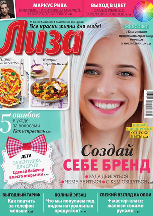 Самый популярный в России еженедельный журнал для молодых женщин «Лиза» стал еще интереснее, еще привлекательнее для читательниц. Теперь больше знаменитостей на страницах любимого журнала! Фитнес со звездой и звездный макияж, уроки стиля и самые горячие новости из жизни кумиров. А еще — модный шопинг, актуальная мода, новинки косметики и великолепные идеи для дома. Романтические истории о настоящей любви и рассказы читательниц о разных жизненных ситуациях. Аспекты психологии, секреты успешных отношений с окружающими и искусство сохранения любви.