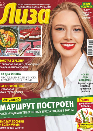 Самый популярный в России еженедельный журнал для молодых женщин «Лиза» стал еще интереснее, еще привлекательнее для читательниц. Теперь больше знаменитостей на страницах любимого журнала! Фитнес со звездой и звездный макияж, уроки стиля и самые горячие новости из жизни кумиров. А еще — модный шопинг, актуальная мода, новинки косметики и великолепные идеи для дома. Романтические истории о настоящей любви и рассказы читательниц о разных жизненных ситуациях. Аспекты психологии, секреты успешных отношений с окружающими и искусство сохранения любви.