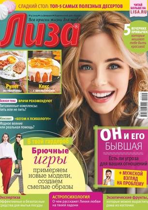 Самый популярный в России еженедельный журнал для молодых женщин «Лиза» стал еще интереснее, еще привлекательнее для читательниц. Теперь больше знаменитостей на страницах любимого журнала! Фитнес со звездой и звездный макияж, уроки стиля и самые горячие новости из жизни кумиров. А еще — модный шопинг, актуальная мода, новинки косметики и великолепные идеи для дома. Романтические истории о настоящей любви и рассказы читательниц о разных жизненных ситуациях. Аспекты психологии, секреты успешных отношений с окружающими и искусство сохранения любви.