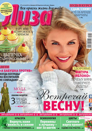 Самый популярный в России еженедельный журнал для молодых женщин «Лиза» стал еще интереснее, еще привлекательнее для читательниц. Теперь больше знаменитостей на страницах любимого журнала! Фитнес со звездой и звездный макияж, уроки стиля и самые горячие новости из жизни кумиров. А еще — модный шопинг, актуальная мода, новинки косметики и великолепные идеи для дома. Романтические истории о настоящей любви и рассказы читательниц о разных жизненных ситуациях. Аспекты психологии, секреты успешных отношений с окружающими и искусство сохранения любви.