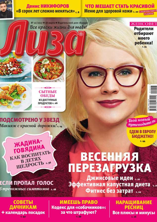 Самый популярный в России еженедельный журнал для молодых женщин «Лиза» стал еще интереснее, еще привлекательнее для читательниц. Теперь больше знаменитостей на страницах любимого журнала! Фитнес со звездой и звездный макияж, уроки стиля и самые горячие новости из жизни кумиров. А еще — модный шопинг, актуальная мода, новинки косметики и великолепные идеи для дома. Романтические истории о настоящей любви и рассказы читательниц о разных жизненных ситуациях. Аспекты психологии, секреты успешных отношений с окружающими и искусство сохранения любви.