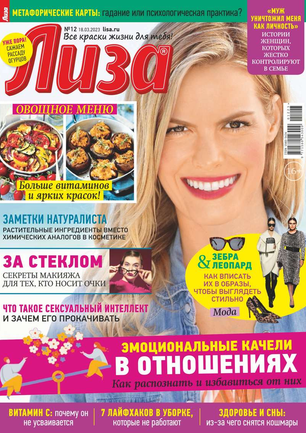 Самый популярный в России еженедельный журнал для молодых женщин «Лиза» стал еще интереснее, еще привлекательнее для читательниц. Теперь больше знаменитостей на страницах любимого журнала! Фитнес со звездой и звездный макияж, уроки стиля и самые горячие новости из жизни кумиров. А еще — модный шопинг, актуальная мода, новинки косметики и великолепные идеи для дома. Романтические истории о настоящей любви и рассказы читательниц о разных жизненных ситуациях. Аспекты психологии, секреты успешных отношений с окружающими и искусство сохранения любви.