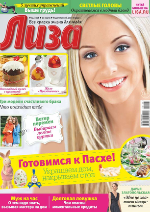 Самый популярный в России еженедельный журнал для молодых женщин «Лиза» стал еще интереснее, еще привлекательнее для читательниц. Теперь больше знаменитостей на страницах любимого журнала! Фитнес со звездой и звездный макияж, уроки стиля и самые горячие новости из жизни кумиров. А еще — модный шопинг, актуальная мода, новинки косметики и великолепные идеи для дома. Романтические истории о настоящей любви и рассказы читательниц о разных жизненных ситуациях. Аспекты психологии, секреты успешных отношений с окружающими и искусство сохранения любви.