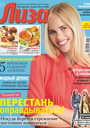 Самый популярный в России еженедельный журнал для молодых женщин «Лиза» стал еще интереснее, еще привлекательнее для читательниц. Теперь больше знаменитостей на страницах любимого журнала! Фитнес со звездой и звездный макияж, уроки стиля и самые горячие новости из жизни кумиров. А еще — модный шопинг, актуальная мода, новинки косметики и великолепные идеи для дома. Романтические истории о настоящей любви и рассказы читательниц о разных жизненных ситуациях. Аспекты психологии, секреты успешных отношений с окружающими и искусство сохранения любви.