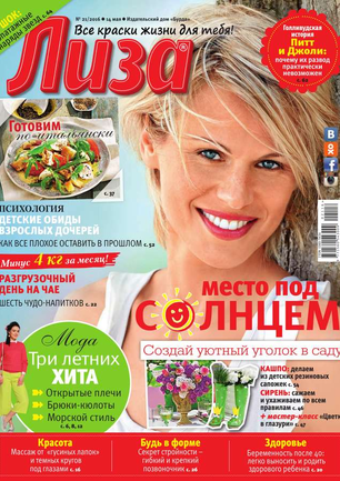 Самый популярный в России еженедельный журнал для молодых женщин «Лиза» стал еще интереснее, еще привлекательнее для читательниц. Теперь больше знаменитостей на страницах любимого журнала! Фитнес со звездой и звездный макияж, уроки стиля и самые горячие новости из жизни кумиров. А еще — модный шопинг, актуальная мода, новинки косметики и великолепные идеи для дома. Романтические истории о настоящей любви и рассказы читательниц о разных жизненных ситуациях. Аспекты психологии, секреты успешных отношений с окружающими и искусство сохранения любви.