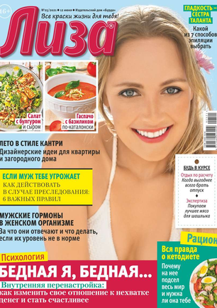 Самый популярный в России еженедельный журнал для молодых женщин «Лиза» стал еще интереснее, еще привлекательнее для читательниц. Теперь больше знаменитостей на страницах любимого журнала! Фитнес со звездой и звездный макияж, уроки стиля и самые горячие новости из жизни кумиров. А еще — модный шопинг, актуальная мода, новинки косметики и великолепные идеи для дома. Романтические истории о настоящей любви и рассказы читательниц о разных жизненных ситуациях. Аспекты психологии, секреты успешных отношений с окружающими и искусство сохранения любви.