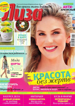 Самый популярный в России еженедельный журнал для молодых женщин «Лиза» стал еще интереснее, еще привлекательнее для читательниц. Теперь больше знаменитостей на страницах любимого журнала! Фитнес со звездой и звездный макияж, уроки стиля и самые горячие новости из жизни кумиров. А еще — модный шопинг, актуальная мода, новинки косметики и великолепные идеи для дома. Романтические истории о настоящей любви и рассказы читательниц о разных жизненных ситуациях. Аспекты психологии, секреты успешных отношений с окружающими и искусство сохранения любви.