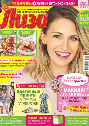 Самый популярный в России еженедельный журнал для молодых женщин «Лиза» стал еще интереснее, еще привлекательнее для читательниц. Теперь больше знаменитостей на страницах любимого журнала! Фитнес со звездой и звездный макияж, уроки стиля и самые горячие новости из жизни кумиров. А еще — модный шопинг, актуальная мода, новинки косметики и великолепные идеи для дома. Романтические истории о настоящей любви и рассказы читательниц о разных жизненных ситуациях. Аспекты психологии, секреты успешных отношений с окружающими и искусство сохранения любви.