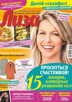 Самый популярный в России еженедельный журнал для молодых женщин «Лиза» стал еще интереснее, еще привлекательнее для читательниц. Теперь больше знаменитостей на страницах любимого журнала! Фитнес со звездой и звездный макияж, уроки стиля и самые горячие новости из жизни кумиров. А еще — модный шопинг, актуальная мода, новинки косметики и великолепные идеи для дома. Романтические истории о настоящей любви и рассказы читательниц о разных жизненных ситуациях. Аспекты психологии, секреты успешных отношений с окружающими и искусство сохранения любви.