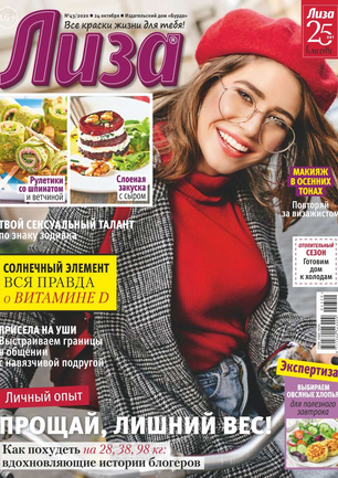 Самый популярный в России еженедельный журнал для молодых женщин «Лиза» стал еще интереснее, еще привлекательнее для читательниц. Теперь больше знаменитостей на страницах любимого журнала! Фитнес со звездой и звездный макияж, уроки стиля и самые горячие новости из жизни кумиров. А еще — модный шопинг, актуальная мода, новинки косметики и великолепные идеи для дома. Романтические истории о настоящей любви и рассказы читательниц о разных жизненных ситуациях. Аспекты психологии, секреты успешных отношений с окружающими и искусство сохранения любви.