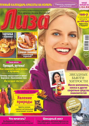 Самый популярный в России еженедельный журнал для молодых женщин «Лиза» стал еще интереснее, еще привлекательнее для читательниц. Теперь больше знаменитостей на страницах любимого журнала! Фитнес со звездой и звездный макияж, уроки стиля и самые горячие новости из жизни кумиров. А еще — модный шопинг, актуальная мода, новинки косметики и великолепные идеи для дома. Романтические истории о настоящей любви и рассказы читательниц о разных жизненных ситуациях. Аспекты психологии, секреты успешных отношений с окружающими и искусство сохранения любви.