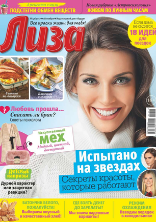 Самый популярный в России еженедельный журнал для молодых женщин «Лиза» стал еще интереснее, еще привлекательнее для читательниц. Теперь больше знаменитостей на страницах любимого журнала! Фитнес со звездой и звездный макияж, уроки стиля и самые горячие новости из жизни кумиров. А еще — модный шопинг, актуальная мода, новинки косметики и великолепные идеи для дома. Романтические истории о настоящей любви и рассказы читательниц о разных жизненных ситуациях. Аспекты психологии, секреты успешных отношений с окружающими и искусство сохранения любви.