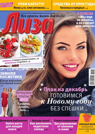 Самый популярный в России еженедельный журнал для молодых женщин «Лиза» стал еще интереснее, еще привлекательнее для читательниц. Теперь больше знаменитостей на страницах любимого журнала! Фитнес со звездой и звездный макияж, уроки стиля и самые горячие новости из жизни кумиров. А еще — модный шопинг, актуальная мода, новинки косметики и великолепные идеи для дома. Романтические истории о настоящей любви и рассказы читательниц о разных жизненных ситуациях. Аспекты психологии, секреты успешных отношений с окружающими и искусство сохранения любви.