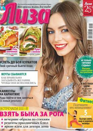 Самый популярный в России еженедельный журнал для молодых женщин «Лиза» стал еще интереснее, еще привлекательнее для читательниц. Теперь больше знаменитостей на страницах любимого журнала! Фитнес со звездой и звездный макияж, уроки стиля и самые горячие новости из жизни кумиров. А еще — модный шопинг, актуальная мода, новинки косметики и великолепные идеи для дома. Романтические истории о настоящей любви и рассказы читательниц о разных жизненных ситуациях. Аспекты психологии, секреты успешных отношений с окружающими и искусство сохранения любви.