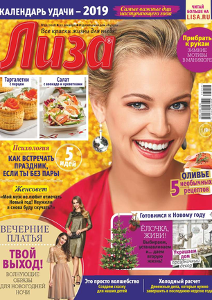 Самый популярный в России еженедельный журнал для молодых женщин «Лиза» стал еще интереснее, еще привлекательнее для читательниц. Теперь больше знаменитостей на страницах любимого журнала! Фитнес со звездой и звездный макияж, уроки стиля и самые горячие новости из жизни кумиров. А еще — модный шопинг, актуальная мода, новинки косметики и великолепные идеи для дома. Романтические истории о настоящей любви и рассказы читательниц о разных жизненных ситуациях. Аспекты психологии, секреты успешных отношений с окружающими и искусство сохранения любви.