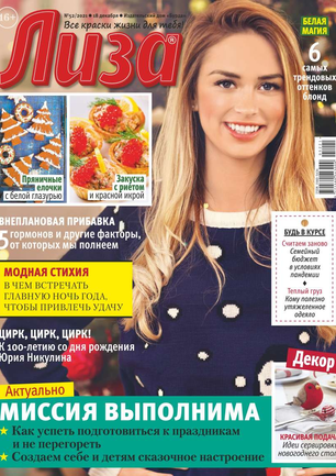 Самый популярный в России еженедельный журнал для молодых женщин «Лиза» стал еще интереснее, еще привлекательнее для читательниц. Теперь больше знаменитостей на страницах любимого журнала! Фитнес со звездой и звездный макияж, уроки стиля и самые горячие новости из жизни кумиров. А еще — модный шопинг, актуальная мода, новинки косметики и великолепные идеи для дома. Романтические истории о настоящей любви и рассказы читательниц о разных жизненных ситуациях. Аспекты психологии, секреты успешных отношений с окружающими и искусство сохранения любви.