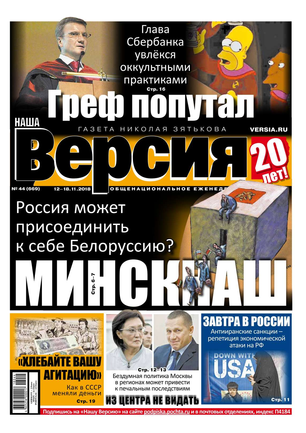 Общероссийская еженедельная газета «Наша Версия» сегодня - это один из ведущих еженедельников журналистских расследований – жесткий и информативный, остроумный и понятный.