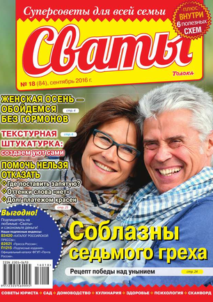 «Сват плохого не посоветует», — говорят в народе. В каждом номере журнала «Сваты» вы найдете: проверенные советы от читателей, экспертов, юристов, медиков, психологов, кулинарные рецепты, секреты здоровья, помощь в воспитании детей разного возраста, песни, байки, анекдоты. И все это в ярком, красочном оформлении.