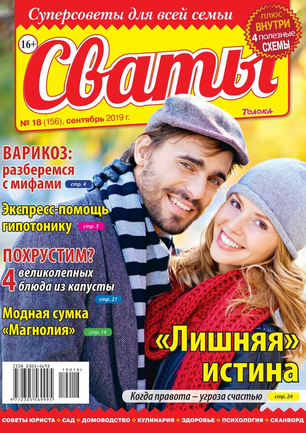 «Сват плохого не посоветует», — говорят в народе. В каждом номере журнала «Сваты» вы найдете: проверенные советы от читателей, экспертов, юристов, медиков, психологов, кулинарные рецепты, секреты здоровья, помощь в воспитании детей разного возраста, песни, байки, анекдоты. И все это в ярком, красочном оформлении.