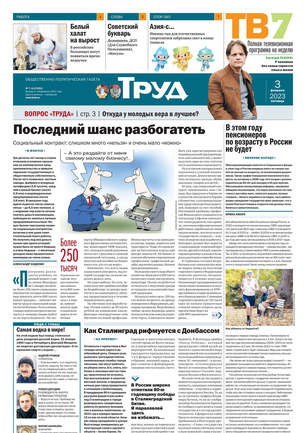 Одна из старейших общественно-политических газет (издается с февраля 1921 года). Корреспонденты «Труда» ежедневно рассказывают читателям о политике, культуре, спорте, экономике, жизни общества, самых интересных новостях дня и многом другом. Издание рассчитано на широкий круг читателей.