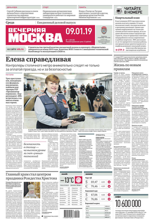 «Вечерняя Москва» — ежедневная российская вечерняя газета, старейшее из вечерних изданий в России, учрежденное в 1923 году. Выходит пять дней в неделю, кроме субботы и воскресенья. Отличается тем, что рассказывает о событиях еще не завершившегося дня. Оперативно освещает хронику и особенности жизни Москвы, охватывает все слои общества и большинство профессиональных и возрастных групп читателей.Издание представлено тремя выпусками – утренним ежедневным, вечерним (выходит три раза в неделю), еженедельным (выходит по четвергам).