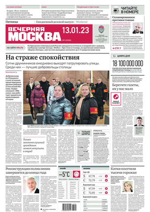 «Вечерняя Москва» — ежедневная российская вечерняя газета, старейшее из вечерних изданий в России, учрежденное в 1923 году. Выходит пять дней в неделю, кроме субботы и воскресенья. Отличается тем, что рассказывает о событиях еще не завершившегося дня. Оперативно освещает хронику и особенности жизни Москвы, охватывает все слои общества и большинство профессиональных и возрастных групп читателей.Издание представлено тремя выпусками – утренним ежедневным, вечерним (выходит три раза в неделю), еженедельным (выходит по четвергам).