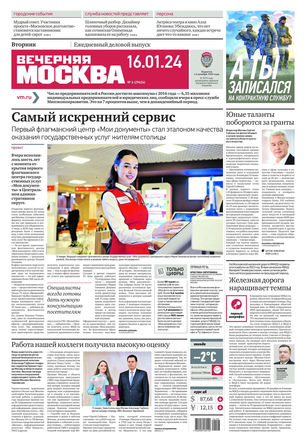 «Вечерняя Москва» — ежедневная российская вечерняя газета, старейшее из вечерних изданий в России, учрежденное в 1923 году. Выходит пять дней в неделю, кроме субботы и воскресенья. Отличается тем, что рассказывает о событиях еще не завершившегося дня. Оперативно освещает хронику и особенности жизни Москвы, охватывает все слои общества и большинство профессиональных и возрастных групп читателей.Издание представлено тремя выпусками – утренним ежедневным, вечерним (выходит три раза в неделю), еженедельным (выходит по четвергам).