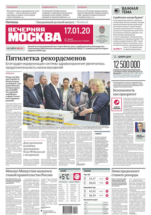 «Вечерняя Москва» — ежедневная российская вечерняя газета, старейшее из вечерних изданий в России, учрежденное в 1923 году. Выходит пять дней в неделю, кроме субботы и воскресенья. Отличается тем, что рассказывает о событиях еще не завершившегося дня. Оперативно освещает хронику и особенности жизни Москвы, охватывает все слои общества и большинство профессиональных и возрастных групп читателей.Издание представлено тремя выпусками – утренним ежедневным, вечерним (выходит три раза в неделю), еженедельным (выходит по четвергам).