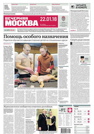 «Вечерняя Москва» — ежедневная российская вечерняя газета, старейшее из вечерних изданий в России, учрежденное в 1923 году. Выходит пять дней в неделю, кроме субботы и воскресенья. Отличается тем, что рассказывает о событиях еще не завершившегося дня. Оперативно освещает хронику и особенности жизни Москвы, охватывает все слои общества и большинство профессиональных и возрастных групп читателей.Издание представлено тремя выпусками – утренним ежедневным, вечерним (выходит три раза в неделю), еженедельным (выходит по четвергам).