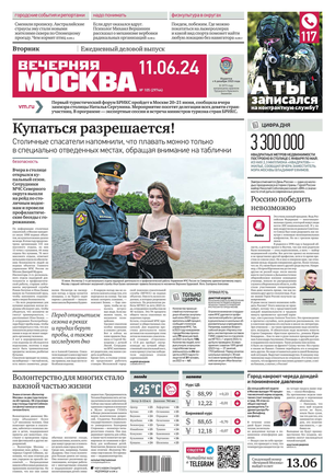 «Вечерняя Москва» — ежедневная российская вечерняя газета, старейшее из вечерних изданий в России, учрежденное в 1923 году. Выходит пять дней в неделю, кроме субботы и воскресенья. Отличается тем, что рассказывает о событиях еще не завершившегося дня. Оперативно освещает хронику и особенности жизни Москвы, охватывает все слои общества и большинство профессиональных и возрастных групп читателей.Издание представлено тремя выпусками – утренним ежедневным, вечерним (выходит три раза в неделю), еженедельным (выходит по четвергам).