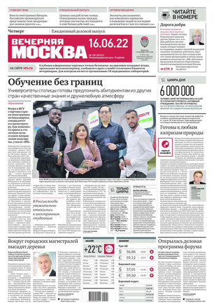 «Вечерняя Москва» — ежедневная российская вечерняя газета, старейшее из вечерних изданий в России, учрежденное в 1923 году. Выходит пять дней в неделю, кроме субботы и воскресенья. Отличается тем, что рассказывает о событиях еще не завершившегося дня. Оперативно освещает хронику и особенности жизни Москвы, охватывает все слои общества и большинство профессиональных и возрастных групп читателей.Издание представлено тремя выпусками – утренним ежедневным, вечерним (выходит три раза в неделю), еженедельным (выходит по четвергам).