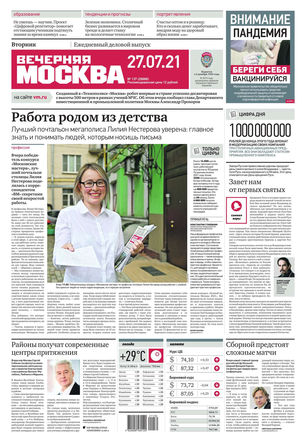 «Вечерняя Москва» — ежедневная российская вечерняя газета, старейшее из вечерних изданий в России, учрежденное в 1923 году. Выходит пять дней в неделю, кроме субботы и воскресенья. Отличается тем, что рассказывает о событиях еще не завершившегося дня. Оперативно освещает хронику и особенности жизни Москвы, охватывает все слои общества и большинство профессиональных и возрастных групп читателей.Издание представлено тремя выпусками – утренним ежедневным, вечерним (выходит три раза в неделю), еженедельным (выходит по четвергам).
