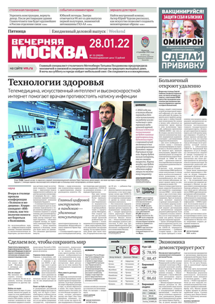 «Вечерняя Москва» — ежедневная российская вечерняя газета, старейшее из вечерних изданий в России, учрежденное в 1923 году. Выходит пять дней в неделю, кроме субботы и воскресенья. Отличается тем, что рассказывает о событиях еще не завершившегося дня. Оперативно освещает хронику и особенности жизни Москвы, охватывает все слои общества и большинство профессиональных и возрастных групп читателей.Издание представлено тремя выпусками – утренним ежедневным, вечерним (выходит три раза в неделю), еженедельным (выходит по четвергам).