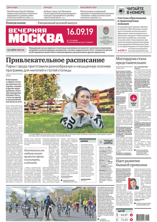«Вечерняя Москва» — ежедневная российская вечерняя газета, старейшее из вечерних изданий в России, учрежденное в 1923 году. Выходит пять дней в неделю, кроме субботы и воскресенья. Отличается тем, что рассказывает о событиях еще не завершившегося дня. Оперативно освещает хронику и особенности жизни Москвы, охватывает все слои общества и большинство профессиональных и возрастных групп читателей.Издание представлено тремя выпусками – утренним ежедневным, вечерним (выходит три раза в неделю), еженедельным (выходит по четвергам).