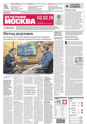 «Вечерняя Москва» — ежедневная российская вечерняя газета, старейшее из вечерних изданий в России, учрежденное в 1923 году. Выходит пять дней в неделю, кроме субботы и воскресенья. Отличается тем, что рассказывает о событиях еще не завершившегося дня. Оперативно освещает хронику и особенности жизни Москвы, охватывает все слои общества и большинство профессиональных и возрастных групп читателей.Издание представлено тремя выпусками – утренним ежедневным, вечерним (выходит три раза в неделю), еженедельным (выходит по четвергам).