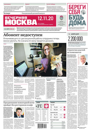 «Вечерняя Москва» — ежедневная российская вечерняя газета, старейшее из вечерних изданий в России, учрежденное в 1923 году. Выходит пять дней в неделю, кроме субботы и воскресенья. Отличается тем, что рассказывает о событиях еще не завершившегося дня. Оперативно освещает хронику и особенности жизни Москвы, охватывает все слои общества и большинство профессиональных и возрастных групп читателей.Издание представлено тремя выпусками – утренним ежедневным, вечерним (выходит три раза в неделю), еженедельным (выходит по четвергам).