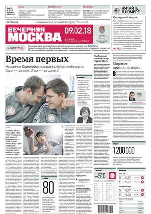 «Вечерняя Москва» — ежедневная российская вечерняя газета, старейшее из вечерних изданий в России, учрежденное в 1923 году. Выходит пять дней в неделю, кроме субботы и воскресенья. Отличается тем, что рассказывает о событиях еще не завершившегося дня. Оперативно освещает хронику и особенности жизни Москвы, охватывает все слои общества и большинство профессиональных и возрастных групп читателей.Издание представлено тремя выпусками – утренним ежедневным, вечерним (выходит три раза в неделю), еженедельным (выходит по четвергам).