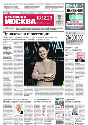 «Вечерняя Москва» — ежедневная российская вечерняя газета, старейшее из вечерних изданий в России, учрежденное в 1923 году. Выходит пять дней в неделю, кроме субботы и воскресенья. Отличается тем, что рассказывает о событиях еще не завершившегося дня. Оперативно освещает хронику и особенности жизни Москвы, охватывает все слои общества и большинство профессиональных и возрастных групп читателей.Издание представлено тремя выпусками – утренним ежедневным, вечерним (выходит три раза в неделю), еженедельным (выходит по четвергам).
