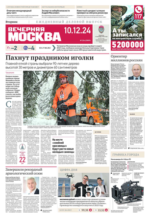 «Вечерняя Москва» — ежедневная российская вечерняя газета, старейшее из вечерних изданий в России, учрежденное в 1923 году. Выходит пять дней в неделю, кроме субботы и воскресенья. Отличается тем, что рассказывает о событиях еще не завершившегося дня. Оперативно освещает хронику и особенности жизни Москвы, охватывает все слои общества и большинство профессиональных и возрастных групп читателей.Издание представлено тремя выпусками – утренним ежедневным, вечерним (выходит три раза в неделю), еженедельным (выходит по четвергам).