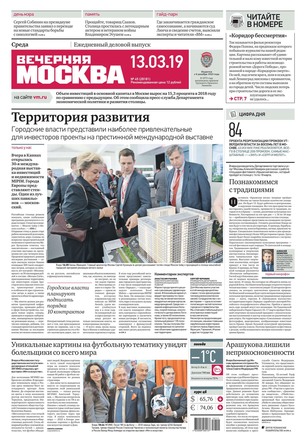 «Вечерняя Москва» — ежедневная российская вечерняя газета, старейшее из вечерних изданий в России, учрежденное в 1923 году. Выходит пять дней в неделю, кроме субботы и воскресенья. Отличается тем, что рассказывает о событиях еще не завершившегося дня. Оперативно освещает хронику и особенности жизни Москвы, охватывает все слои общества и большинство профессиональных и возрастных групп читателей.Издание представлено тремя выпусками – утренним ежедневным, вечерним (выходит три раза в неделю), еженедельным (выходит по четвергам).