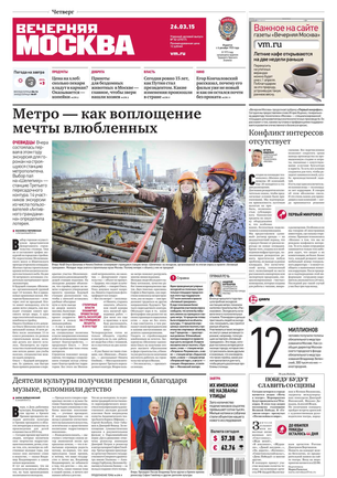«Вечерняя Москва» — ежедневная российская вечерняя газета, старейшее из вечерних изданий в России, учрежденное в 1923 году. Выходит пять дней в неделю, кроме субботы и воскресенья. Отличается тем, что рассказывает о событиях еще не завершившегося дня. Оперативно освещает хронику и особенности жизни Москвы, охватывает все слои общества и большинство профессиональных и возрастных групп читателей.Издание представлено тремя выпусками – утренним ежедневным, вечерним (выходит три раза в неделю), еженедельным (выходит по четвергам).