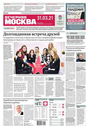 «Вечерняя Москва» — ежедневная российская вечерняя газета, старейшее из вечерних изданий в России, учрежденное в 1923 году. Выходит пять дней в неделю, кроме субботы и воскресенья. Отличается тем, что рассказывает о событиях еще не завершившегося дня. Оперативно освещает хронику и особенности жизни Москвы, охватывает все слои общества и большинство профессиональных и возрастных групп читателей.Издание представлено тремя выпусками – утренним ежедневным, вечерним (выходит три раза в неделю), еженедельным (выходит по четвергам).