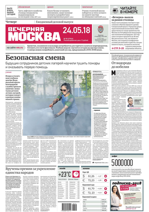 «Вечерняя Москва» — ежедневная российская вечерняя газета, старейшее из вечерних изданий в России, учрежденное в 1923 году. Выходит пять дней в неделю, кроме субботы и воскресенья. Отличается тем, что рассказывает о событиях еще не завершившегося дня. Оперативно освещает хронику и особенности жизни Москвы, охватывает все слои общества и большинство профессиональных и возрастных групп читателей.Издание представлено тремя выпусками – утренним ежедневным, вечерним (выходит три раза в неделю), еженедельным (выходит по четвергам).