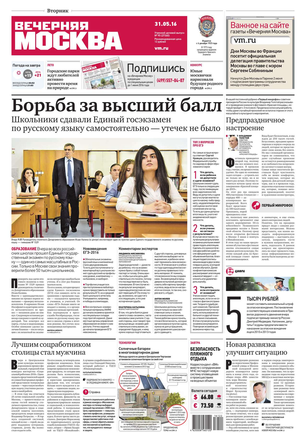 Еженедельный выпуск «Вечерней Москвы» — это значимые события недели, афиша города, новости из сферы отдыха и развлечений, телепрограмма с анонсами и комментариями, авторские колонки журналистов и авторитетные мнения экспертов, детская страничка, специальная рубрика «Золушка», интересные репортажи о необычных судьбах московских жителей, постоянные конкурсы и викторины.