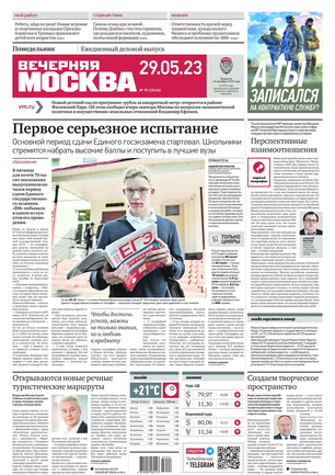 «Вечерняя Москва» — ежедневная российская вечерняя газета, старейшее из вечерних изданий в России, учрежденное в 1923 году. Выходит пять дней в неделю, кроме субботы и воскресенья. Отличается тем, что рассказывает о событиях еще не завершившегося дня. Оперативно освещает хронику и особенности жизни Москвы, охватывает все слои общества и большинство профессиональных и возрастных групп читателей.Издание представлено тремя выпусками – утренним ежедневным, вечерним (выходит три раза в неделю), еженедельным (выходит по четвергам).
