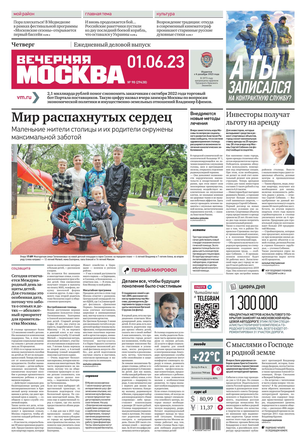«Вечерняя Москва» — ежедневная российская вечерняя газета, старейшее из вечерних изданий в России, учрежденное в 1923 году. Выходит пять дней в неделю, кроме субботы и воскресенья. Отличается тем, что рассказывает о событиях еще не завершившегося дня. Оперативно освещает хронику и особенности жизни Москвы, охватывает все слои общества и большинство профессиональных и возрастных групп читателей.Издание представлено тремя выпусками – утренним ежедневным, вечерним (выходит три раза в неделю), еженедельным (выходит по четвергам).