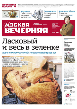 «Вечерняя Москва» — ежедневная российская вечерняя газета, старейшее из вечерних изданий в России, учрежденное в 1923 году. Выходит пять дней в неделю, кроме субботы и воскресенья. Отличается тем, что рассказывает о событиях еще не завершившегося дня. Оперативно освещает хронику и особенности жизни Москвы, охватывает все слои общества и большинство профессиональных и возрастных групп читателей.Издание представлено тремя выпусками – утренним ежедневным, вечерним (выходит три раза в неделю), еженедельным (выходит по четвергам).